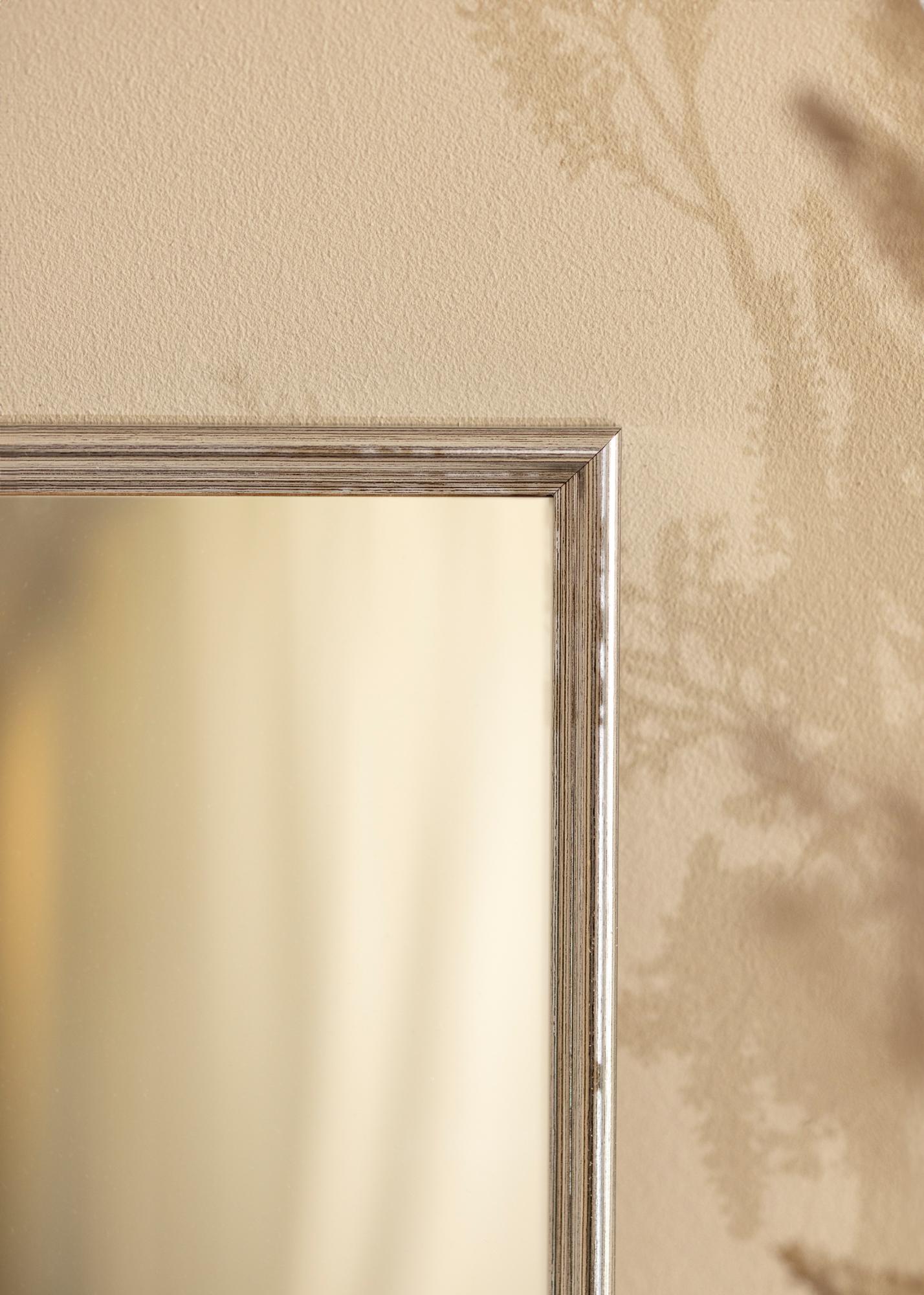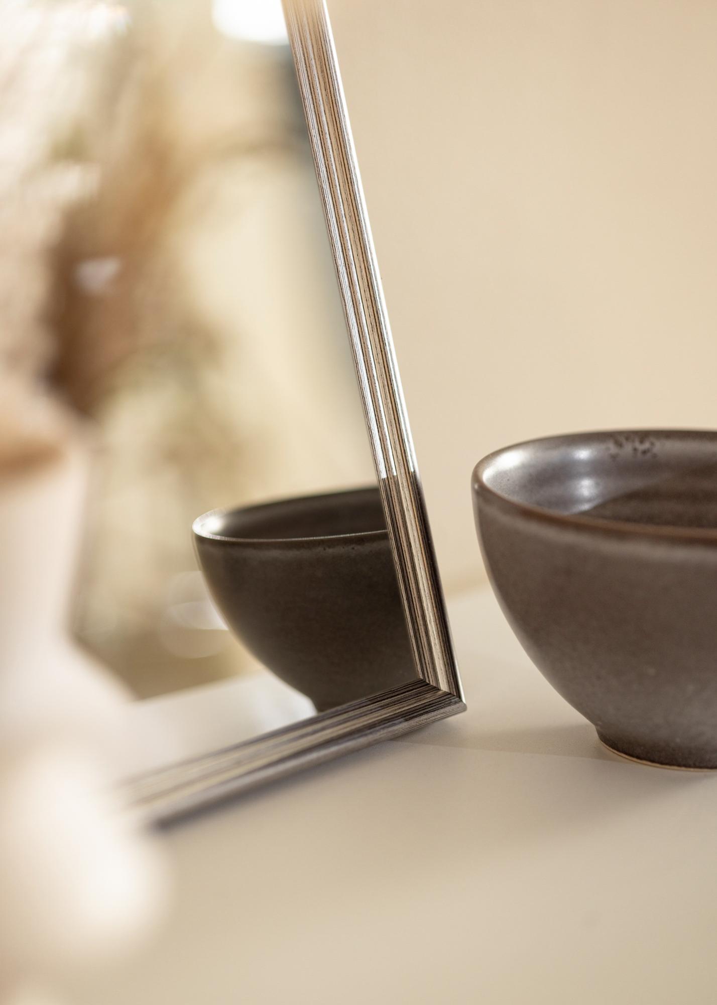 Vytvořme zrcadlo, které se dokonale hodí do vašeho domova! Toto elegantní zrcadlo je vyrobeno na míru podle vašich vlastních rozměrů, abyste si mohli být jisti, že je to správně. Zrcadlo má klasicky profilovaný rám, který je natřený lesklou stříbrnou barvou. Hodí se dobře k interiérovým komponentům například v černé, bílé a fialové barvě.