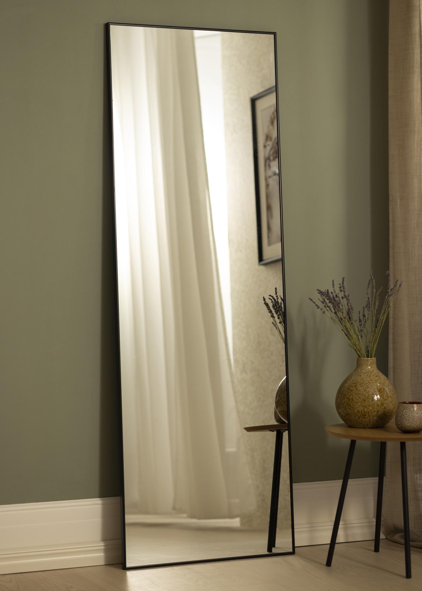 Objevte stylovou eleganci s naším stojícím zrcadlem o rozměrech 60x165 cm, perfektní kombinací funkce a designu. Toto štíhlé, obdélníkové zrcadlo je elegantně obklopeno černým hliníkovým rámem, který přidává moderní a sofistikovaný pocit do každé místnosti. Jeho velkorysé rozměry a klasický tvar z něj činí praktický a dekorativní prvek ve vašem domově.