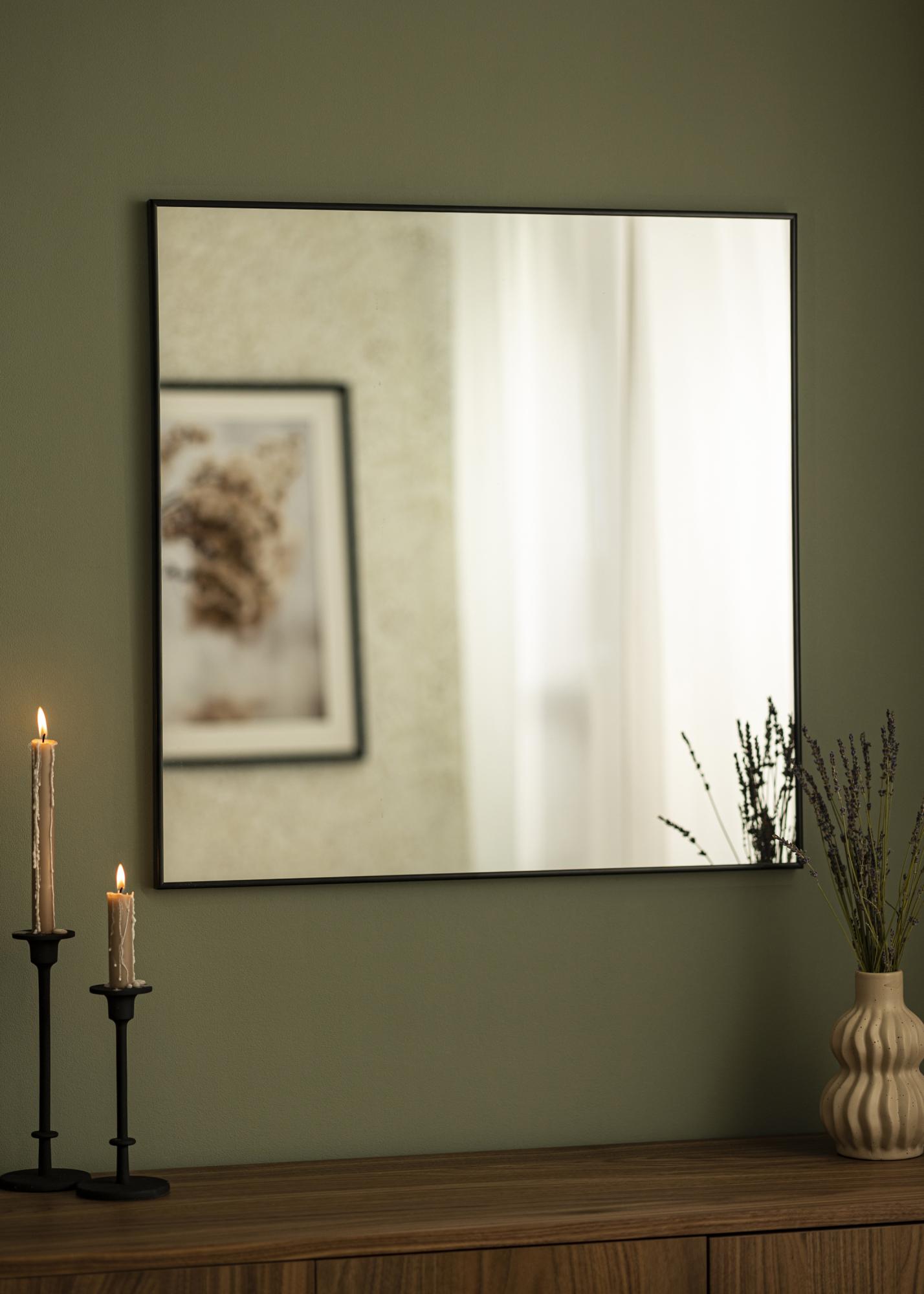 Objevte elegantní krásu s naším stojatým zrcadlem 75x75 cm, dokonalou kombinací funkce a moderního designu. Toto štíhlé, obdélníkové zrcadlo je elegantně lemováno černým hliníkovým rámem, což dodává každé místnosti moderní a sofistikovaný vzhled. Jeho velkorysá velikost a klasický tvar z něj činí praktický a dekorativní prvek ve vašem domově.