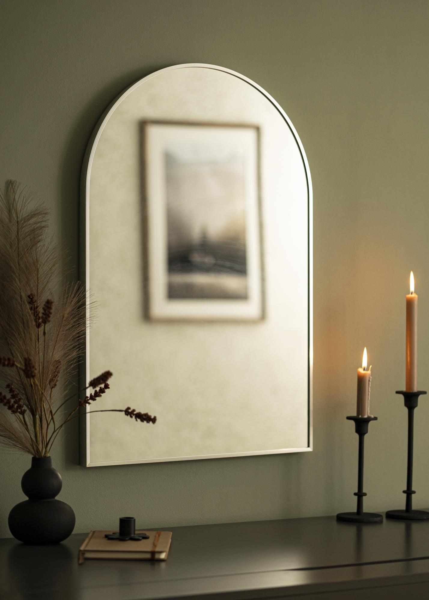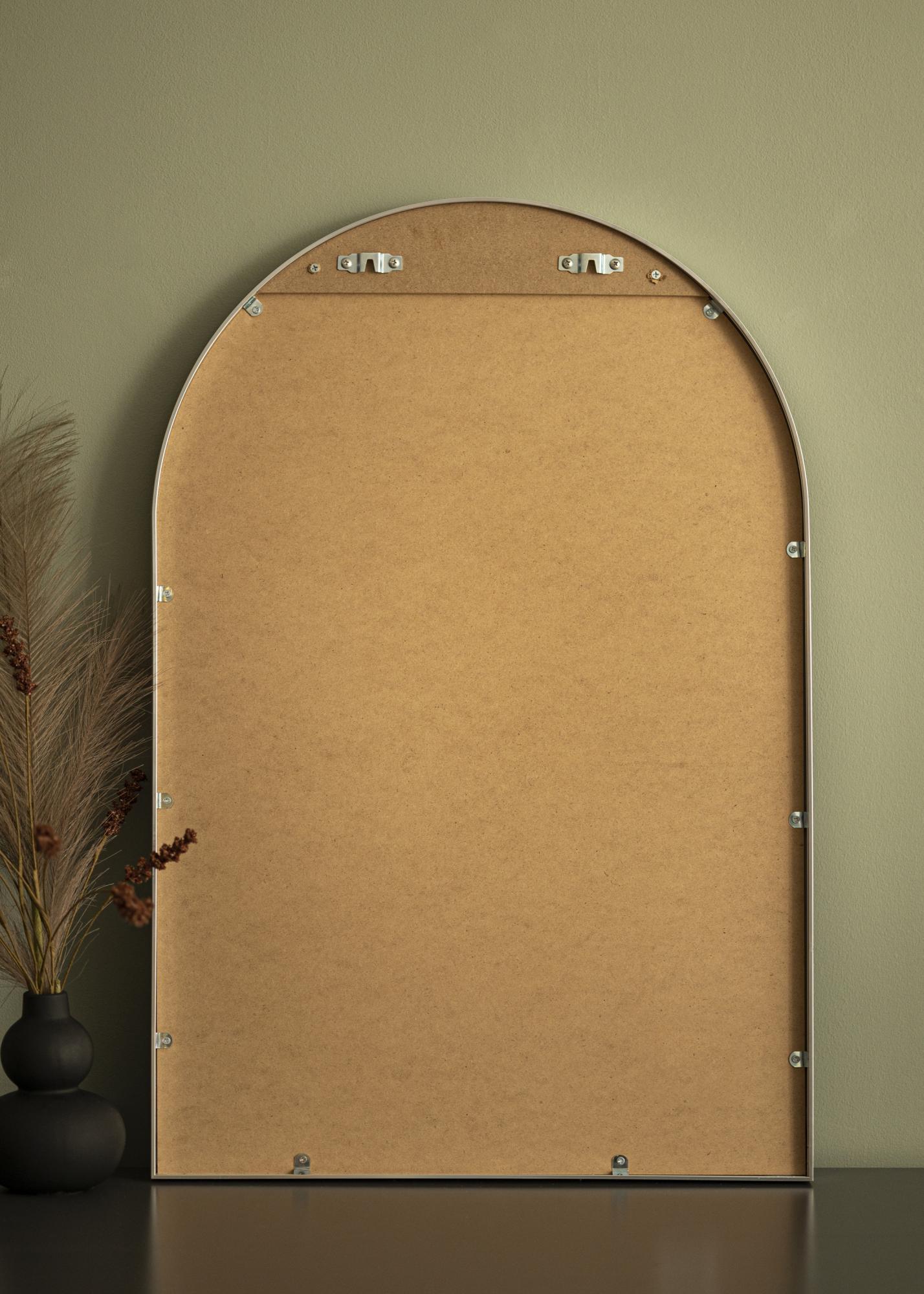 Toto nástěnné zrcadlo je jak trendy, tak funkční – jinými slovy, perfektní v každém domově! Obloukový design je doplněn 28 mm hlubokým rámem ve stříbrném odstínu, který dává celému zrcadlu moderní výraz. Rám je vyroben z kovu.