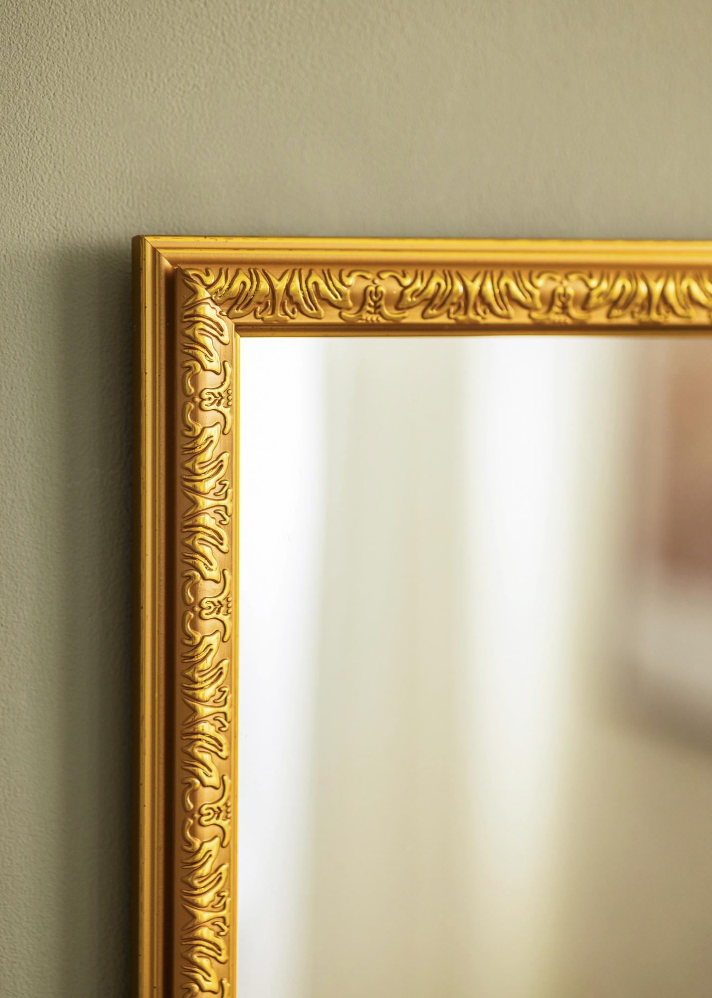 Hledáte-li luxusní zrcadlo ve zlaté barvě, můžete přestat hledat. Nostalgia Zlato je nástěnné zrcadlo s 2,8 cm širokým rámem s elegantním profilem a krásným dekorativním vzorem. Zrcadlové sklo bude odrážet světlo ve vašem pokoji, zatímco samotné zrcadlo se stane stylovým prvkem na vaší stěně. Na zadní straně je nástěnný držák pro snadnější zavěšení.