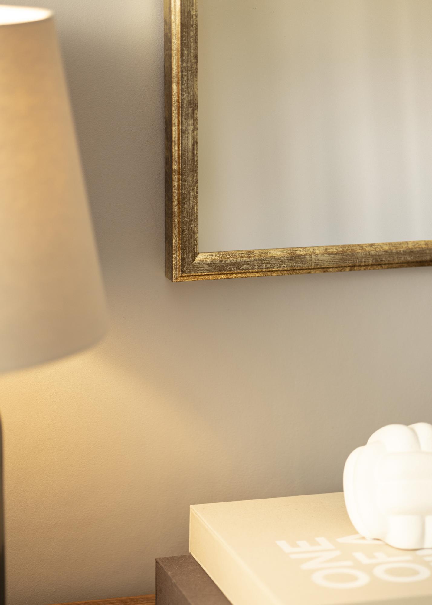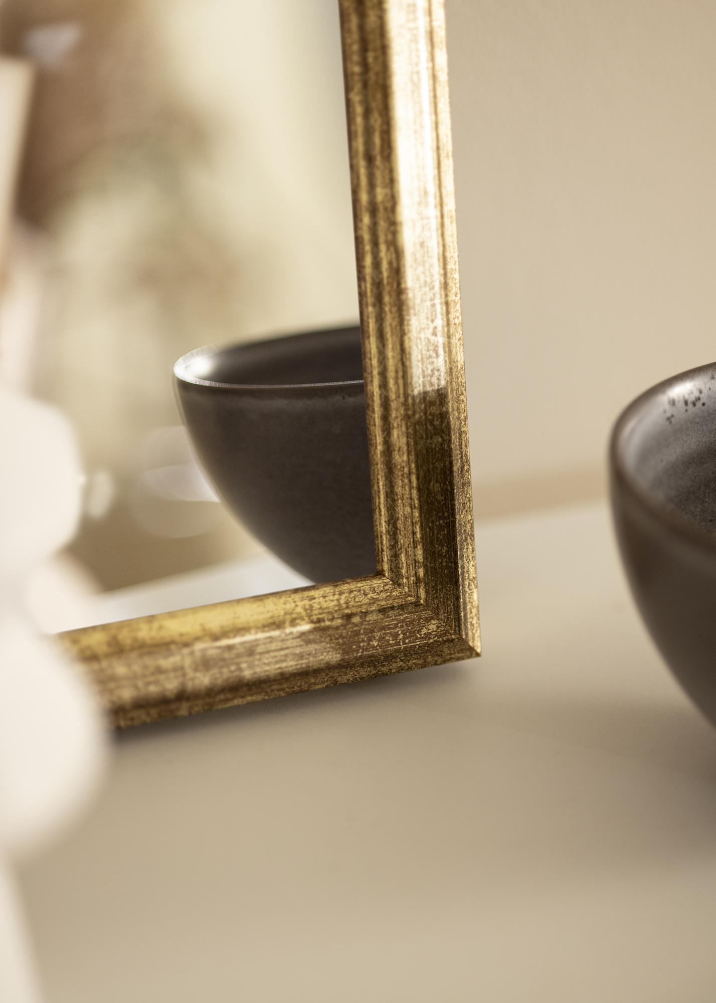 Ozdobte stěnu dekorativním zrcadlem, které ji pozvedne a rozjasní! Tento konkrétní model má zlatozbarvený rám, který byl upraven tak, aby vypadal kouzelně antikvovaně. Skombinujte s podobnými rámy pro pěkný celek.