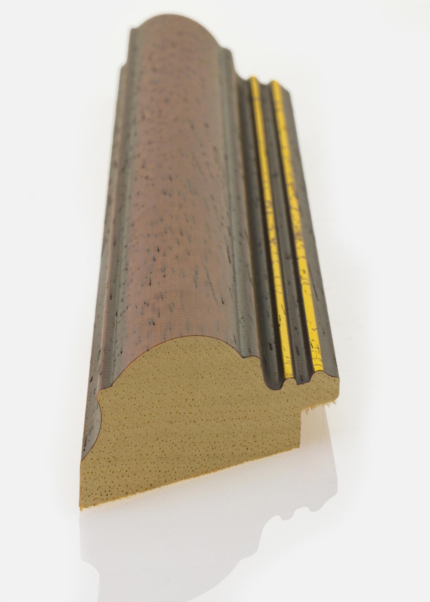 Orsa je zrcadlo v klasickém stylu s hnědým základem s černými prvky, kombinované se dvěma zlatými linkami.