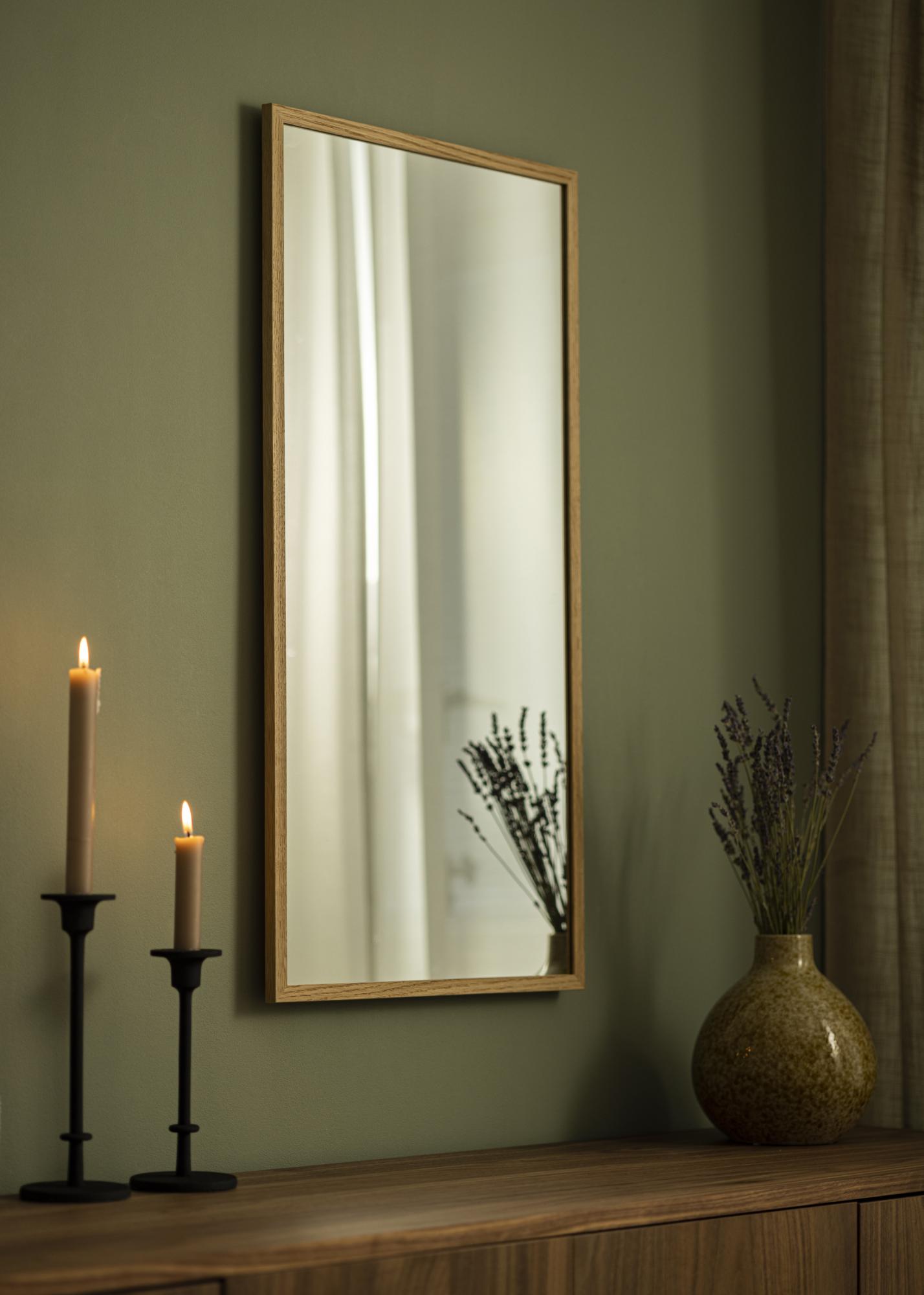 Toto obdélníkové zrcadlo je orámované v masivním dubu, což přináší teplý a organický pocit do vašeho interiéru. Přírodní dřevěný rám není jen krásný na pohled, ale také přispívá k udržitelnému a nadčasovému designu, který vydrží mnoho let.