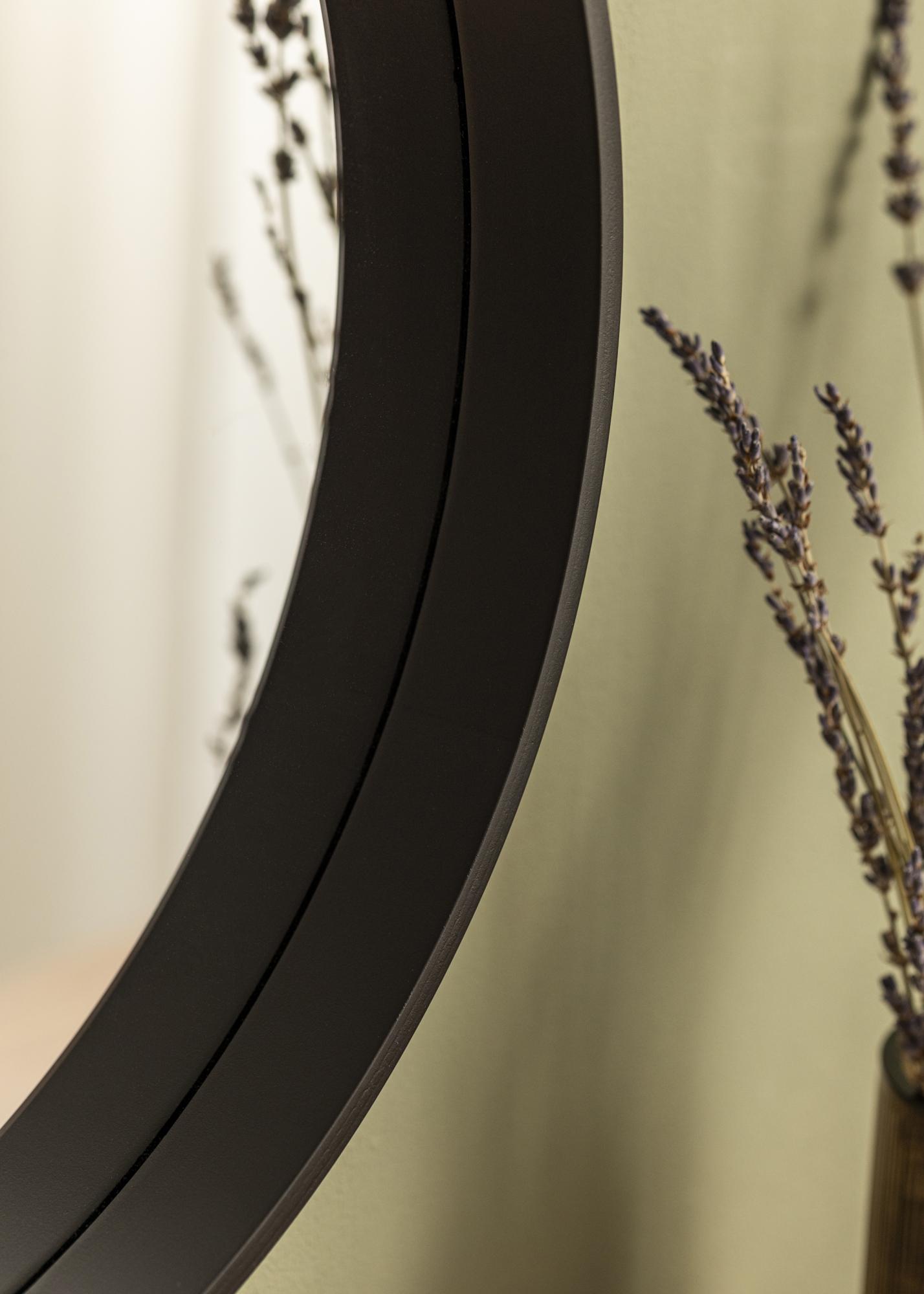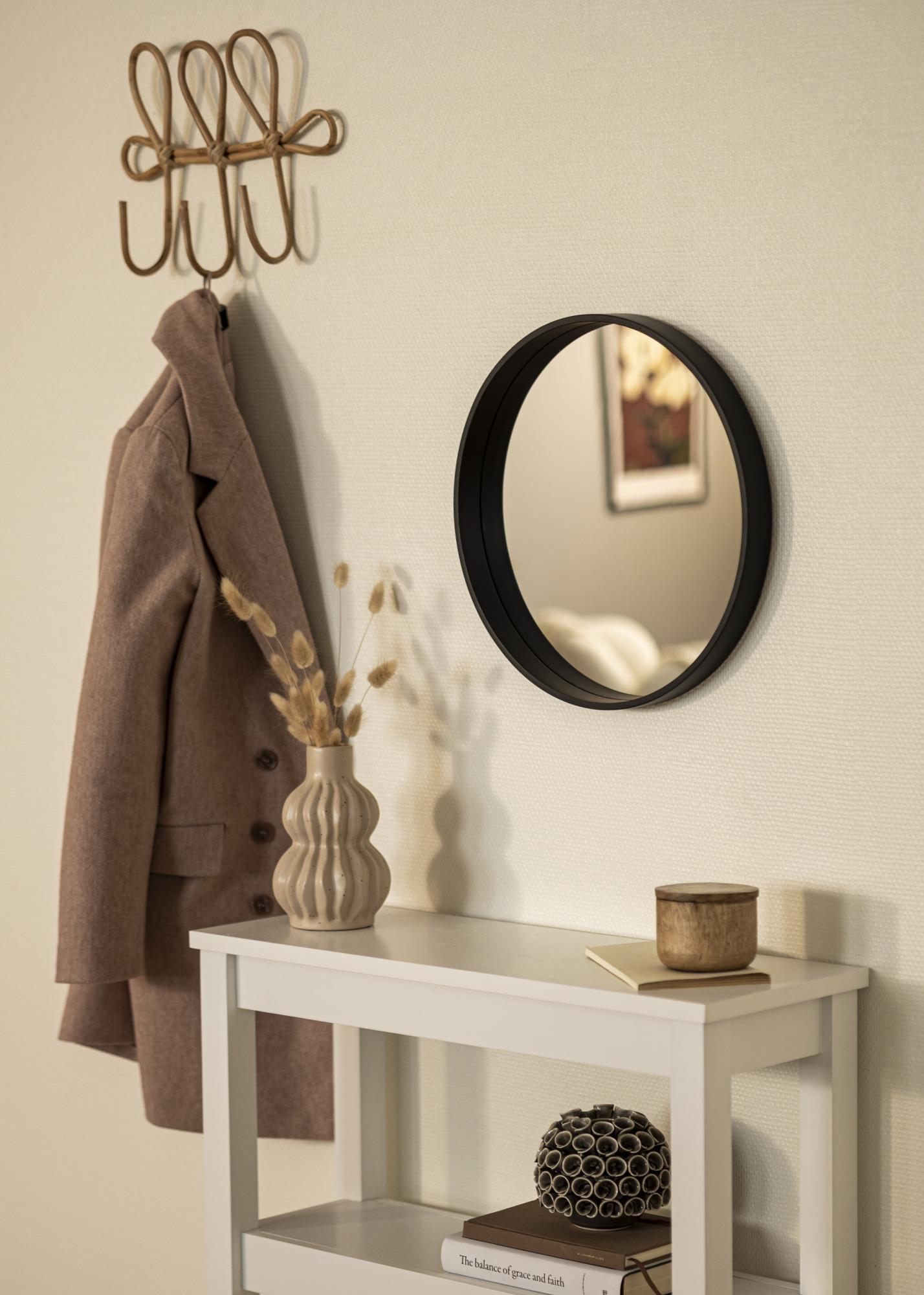 Objevte elegantní jednoduchost našeho kulatého zrcadla, nadčasového interiérového prvku, který se perfektně hodí do každého domova. Toto stylové kulaté zrcadlo vyniká svým černým rámem, který přináší do místnosti svěží a moderní pocit. Jeho minimalistický design umožňuje jeho zapadnutí do různých interiérových stylů, od skandinávského po industriální.