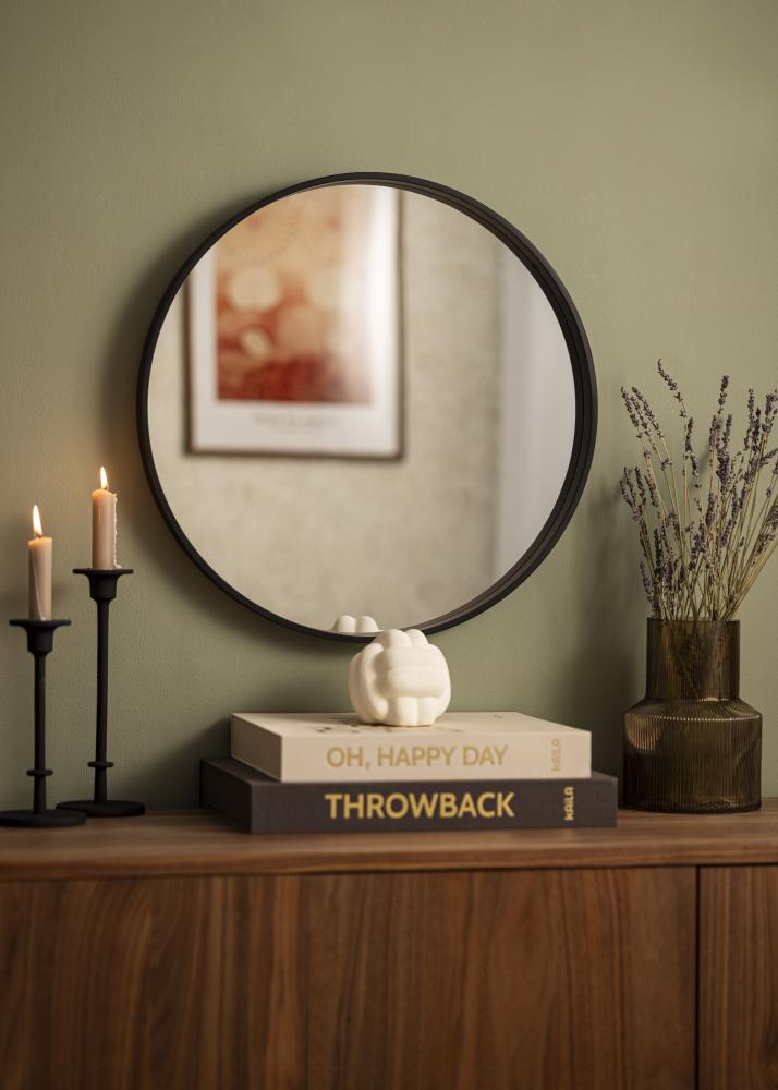Objevte elegantní jednoduchost naší kulaté zrcadla, nadčasového dekorativního prvku, který se dokonale hodí do každého domova. Toto stylové, kulaté zrcadlo se vyznačuje černým rámem, který přináší svěžest a moderní pocit do místnosti. Jeho minimalistický design zajišťuje, že zapadne do různých stylů interiéru, od skandinávského po industriální.