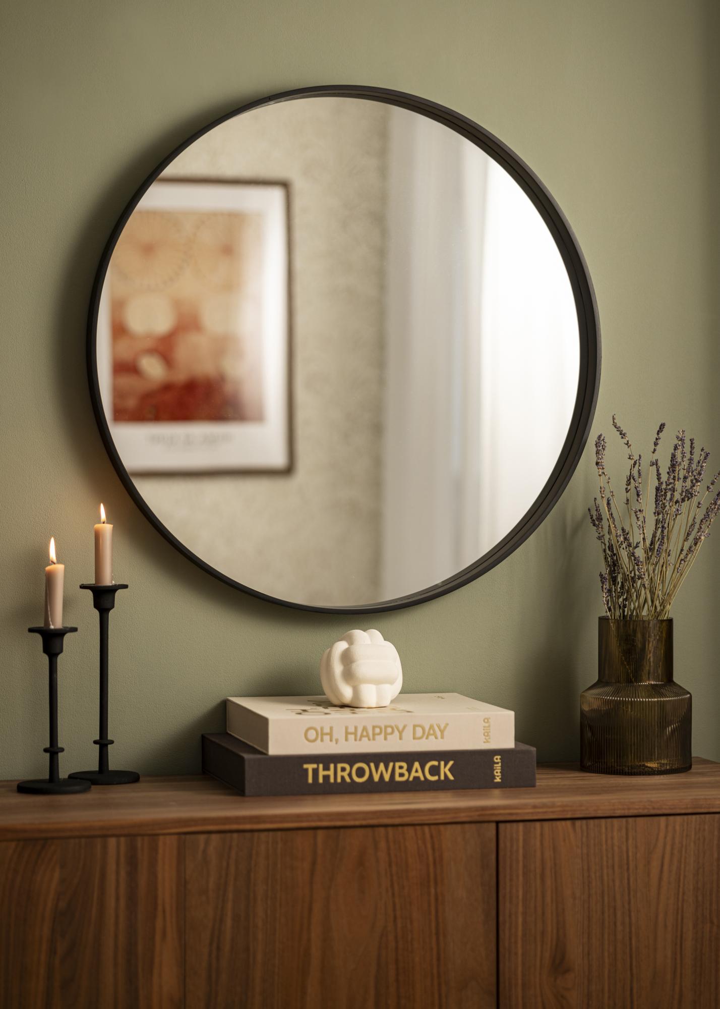 Objevte elegantní jednoduchost našeho kulatého zrcadla, nadčasového prvku interiéru, který se dokonale hodí do každého domova. Toto stylové kulaté zrcadlo se vyznačuje svým černým rámem, který dodává do místnosti svěží a moderní pocit. Jeho minimalistický design umožňuje, aby zapadlo jak do klasických, tak do současných prostředí, a stalo se působivým ústředním bodem na zdi.