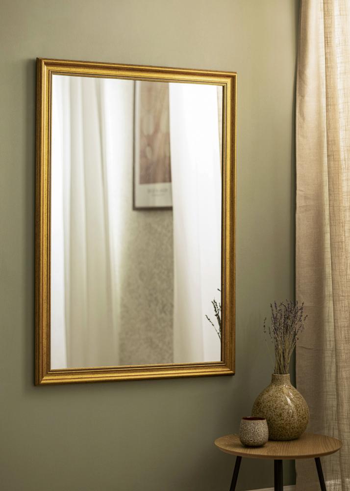 Rokoko je série zrcadel s krásným rámem v elegantním rokoko stylu. Rám je zlatý, což zrcadlu dodává velký pocit luxusu. Dekorativní a luxusní provedení činí zrcadlo perfektním interiérovým prvkem v předsíni, ložnici nebo obývacím pokoji. Zrcadlo je k dispozici v různých velikostech, abyste si mohli vybrat to, které nejlépe zapadne do vašeho domova. Toto zrcadlo měří 70x100 cm.