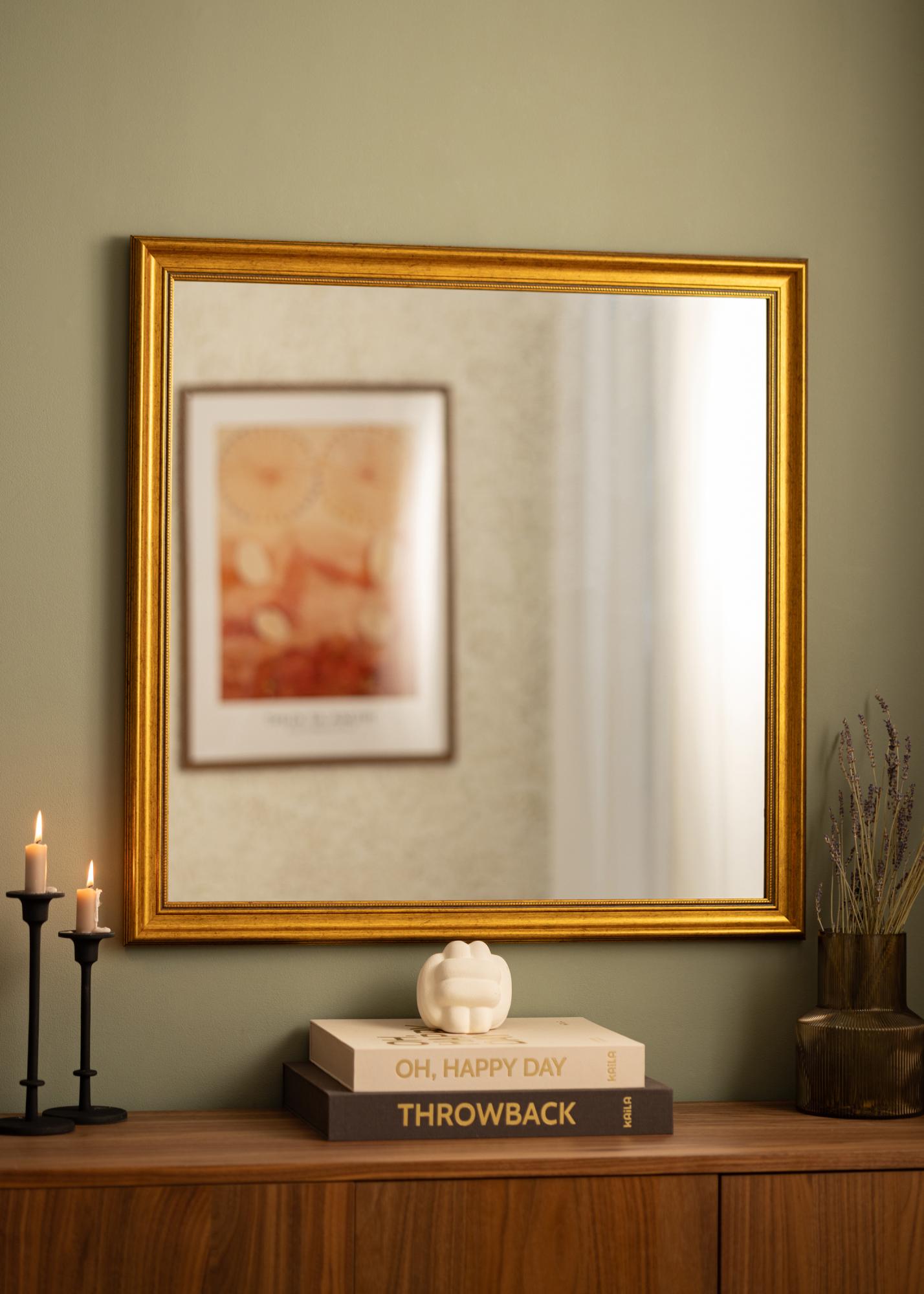 Rokoko je řada zrcadel s krásným rámem v elegantním rokoko stylu. Rám je zlaté barvy, což dodává zrcadlu velký pocit luxusu. Dekorativní a luxusní provedení činí zrcadlo perfektním interiérovým prvkem do předsíně, ložnice nebo obývacího pokoje. Zrcadlo je dostupné v různých velikostech, takže si můžete vybrat to, které nejlépe zapadne do vašeho domova. Toto zrcadlo má rozměry 80x80 cm.