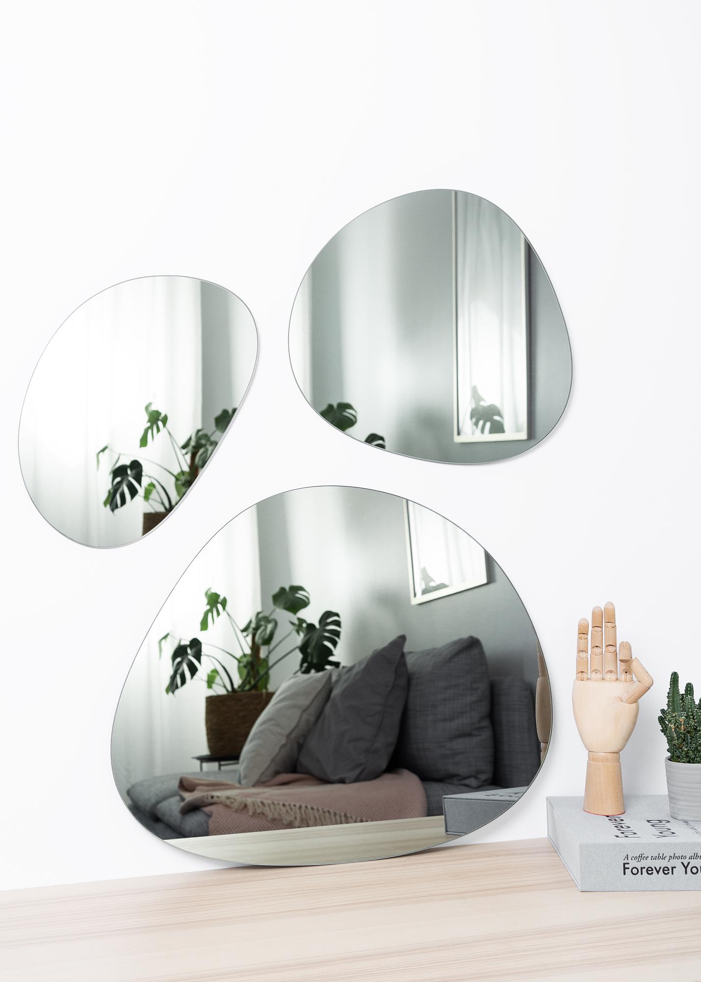 Tato sada zrcadel pochází od dánské společnosti Incado, což znamená, že zrcadla mají vysokou kvalitu a vysoký trendový faktor. Tónované zrcadlové sklo v teplé šedé barvě je dělá mimořádně atraktivními a je to skvělý design s různými velikostmi.