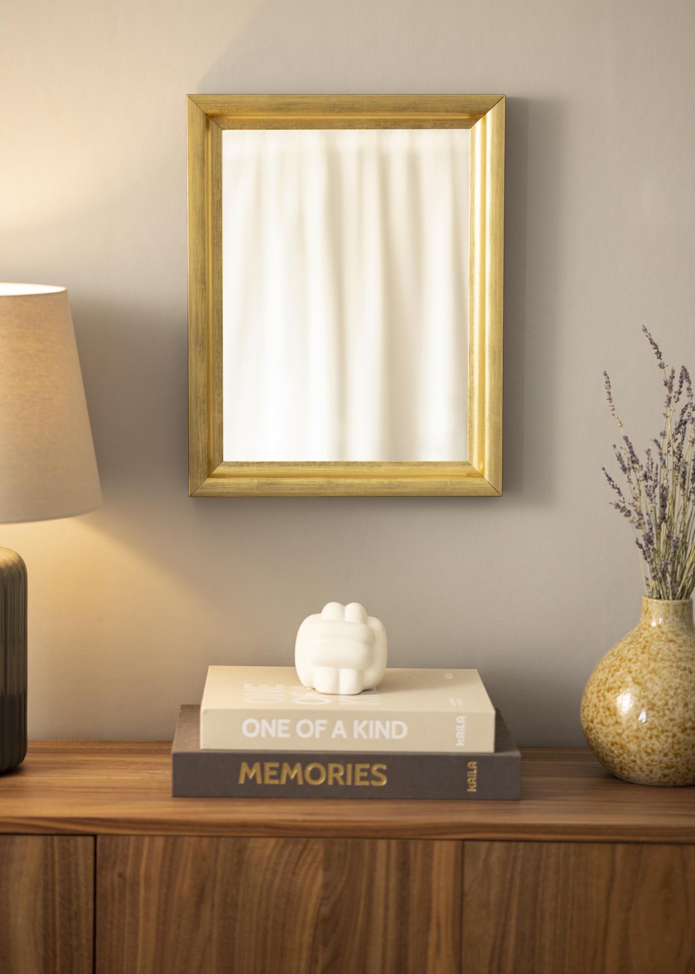 Klasické zrcadlo, kde si sami vyberete, jak velké zrcadlo chcete mít. Se svým širokým a hlubokým profilem je to zrcadlo, které si určitě všimnete. Zrcadlo má jemný příjemný zlatý tón, který dodává útulný a krásný pocit.