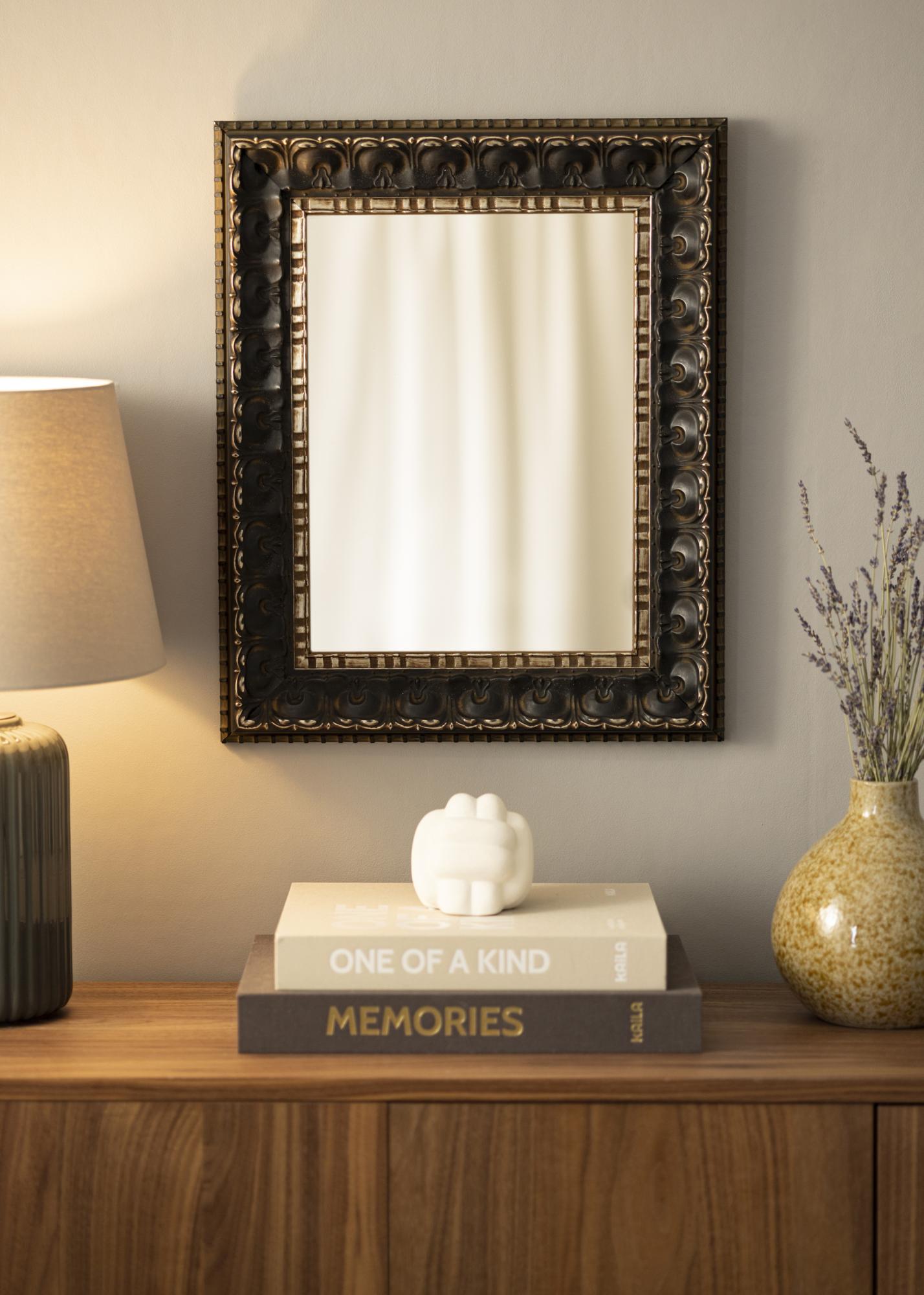 Co by byl život bez mimořádných interiérových detailů, které dělají místnosti luxusními? Toto zrcadlo je rozhodně jedním z nich. Rozmanitý vzor spolu s odstíny černé a zlata přitahuje pohledy a oživuje vaši stěnu.