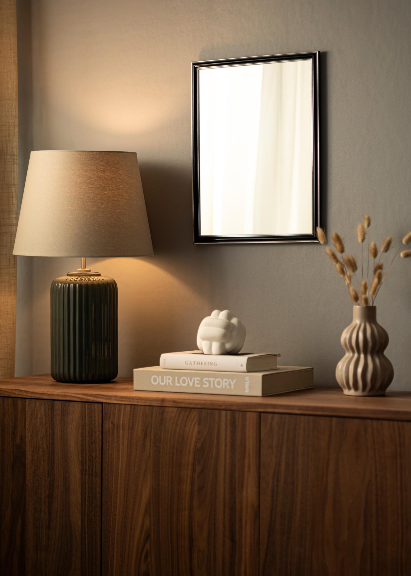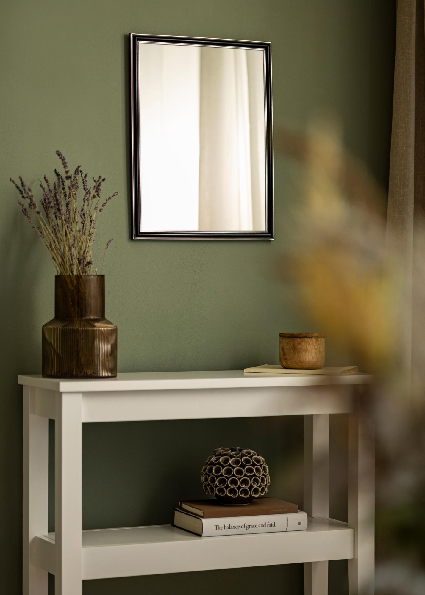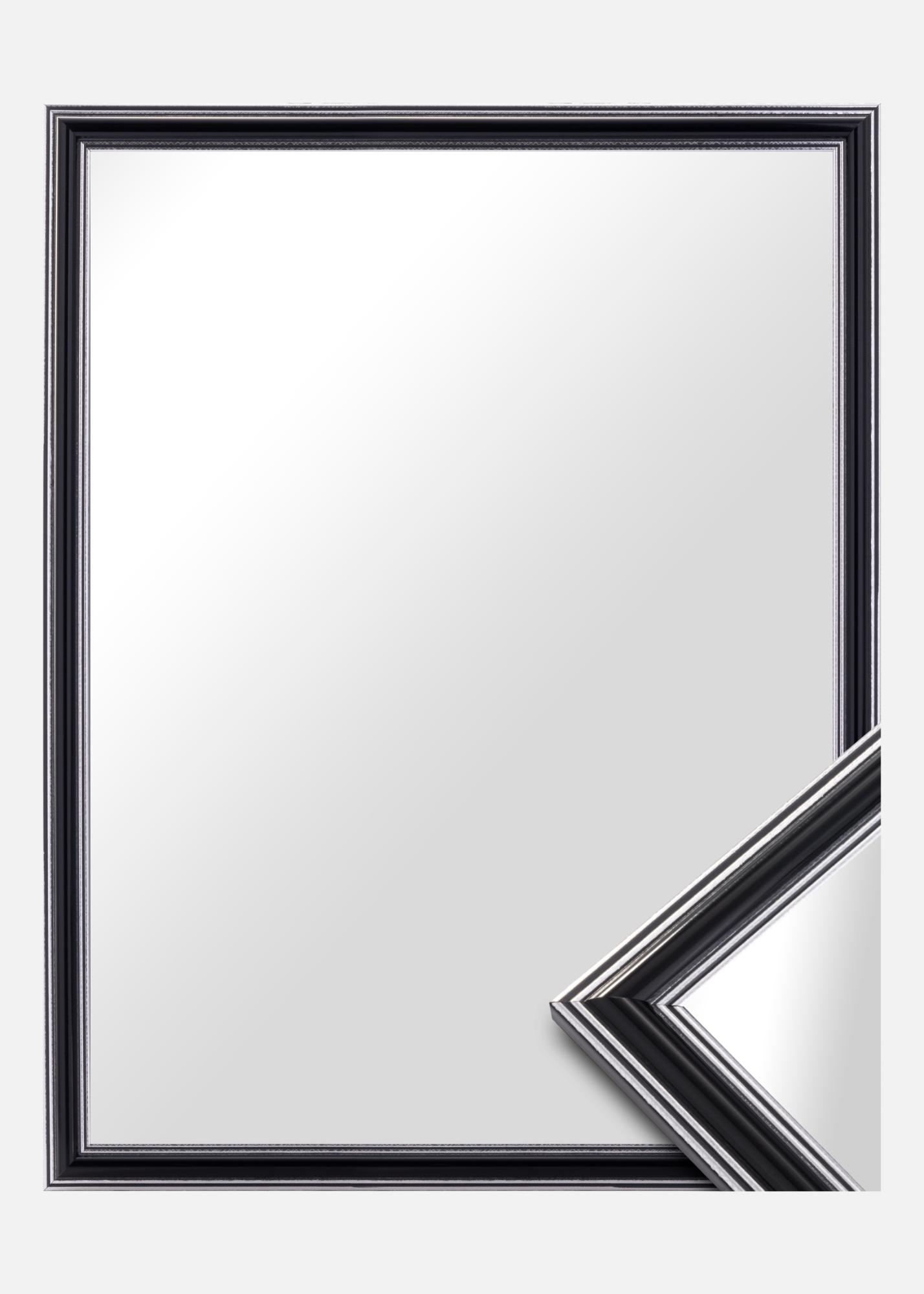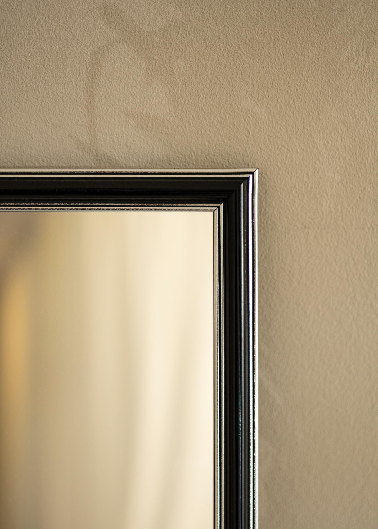 Pořiďte si stylové zrcadlo, které se zaručeně hodí tam, kde ho chcete mít! Toto luxusní zrcadlo je vyrobeno podle vašich rozměrů v naší vlastní rámové dílně. Černá středová část se stříbrnými okraji na vnější straně a blízko skla dodává mužský nádech. Snadno se sladí s ostatní dekorací například ve stříbrné, černé, bílé a fialové barvě.