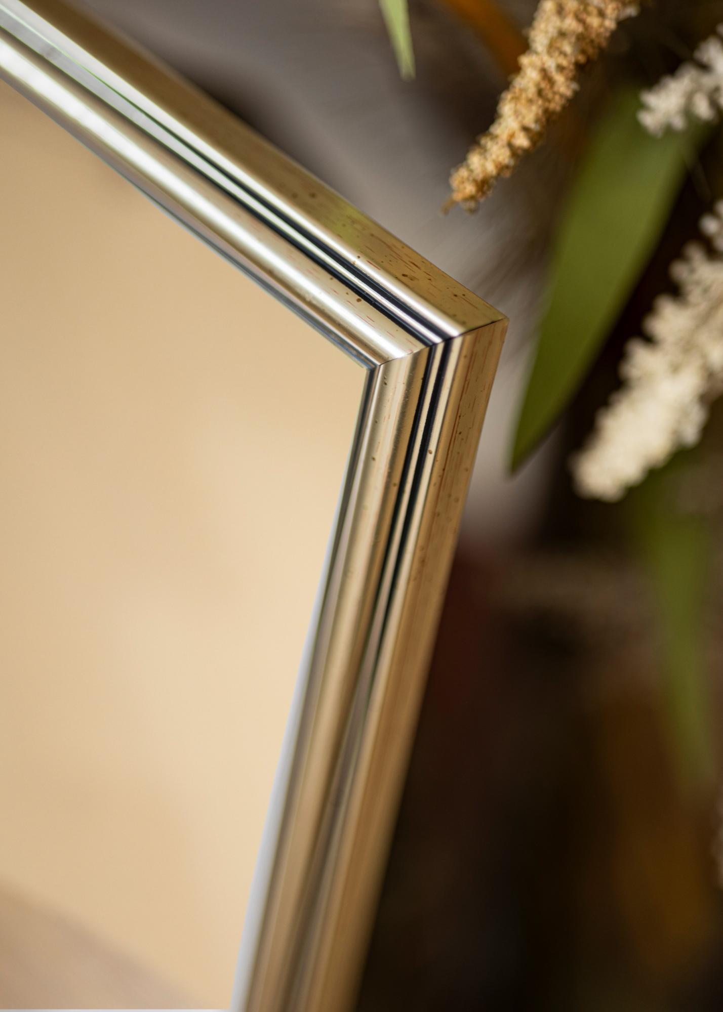 Stříbrné interiérové komponenty dodávají vašemu domovu styl! Zde máme elegantní zrcadlo na míru s profilovaným rámečkem. Zrcadlo vypadá skvěle v kombinaci s barvami jako černá, stříbrná a fialová. Protože je na míru, můžete si být jisti, že přesně zapadne tam, kam chcete.