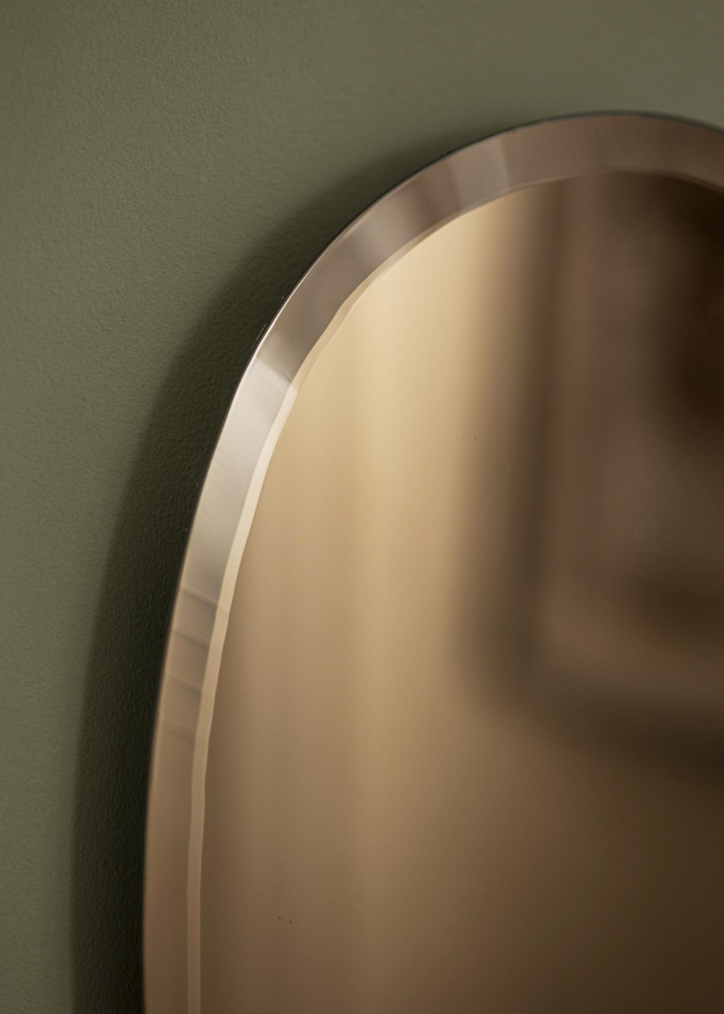 Toto zrcadlo má výrazný a plynulý tvar, který vyzařuje organický pocit, což z něj činí poutavý doplněk v místnosti. Bronzové zrcadlové sklo poskytuje teplý a příjemný lesk, a přidává nádech retro kouzla, aniž by zatěžovalo okolní prostor.