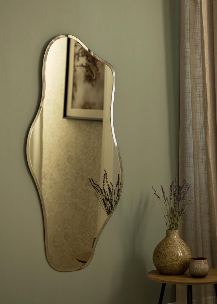 Díky možnosti zavěšení zrcadla buď stojacího nebo ležícího, jej můžete přizpůsobit svému prostoru a stylu. Jedinečný tvar a teplá zlatá barva způsobují, že zrcadlo nejen odráží váš obraz, ale také světlo, což vytváří teplou a příjemnou atmosféru ve vašem domově. Vyberte si toto zrcadlo, abyste svému pokoji poskytli okamžitý upgrade se stylem i funkcí.