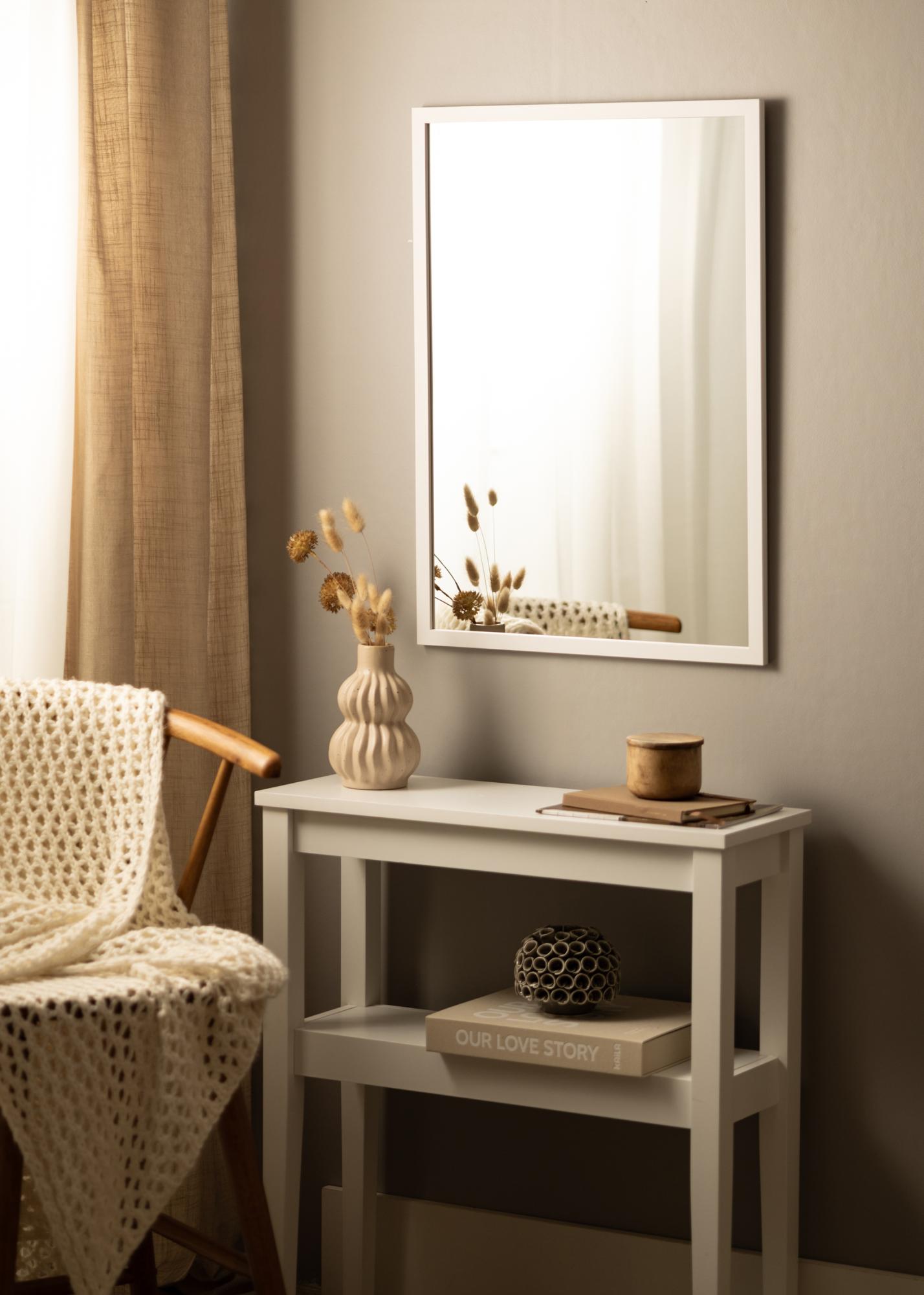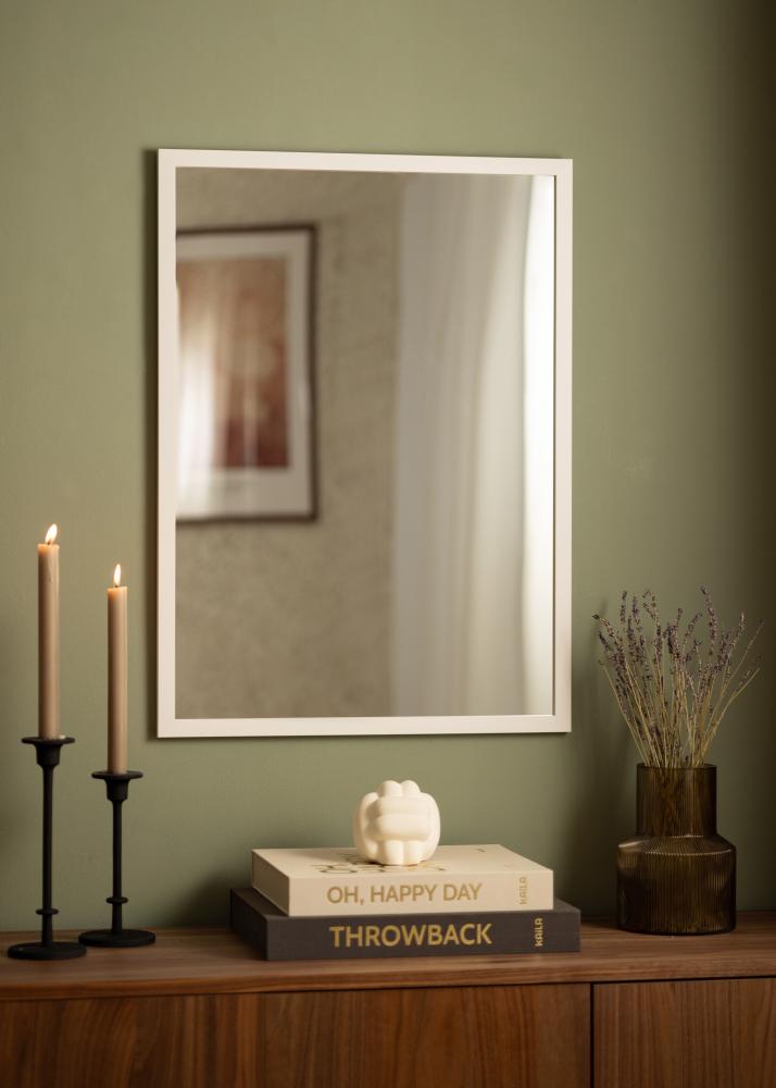Toto zrcadlo má klasický vzhled s rámem širokým 22 mm a hlubokým 15 mm z bíle natřeného dřeva. Tradiční dojem je posílen nebarveným zrcadlovým sklem.