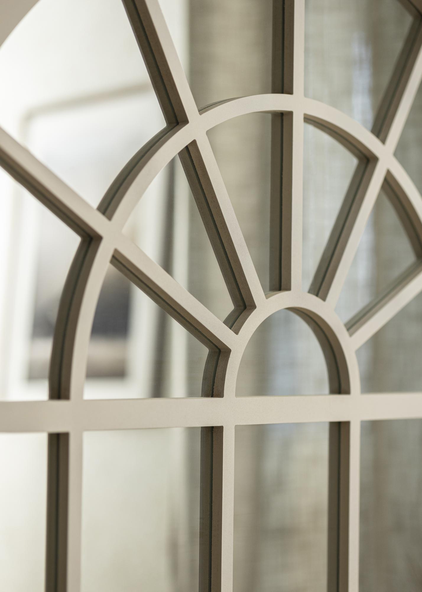 Toto zrcadlo má polokruhový obloukový tvar, který vytváří měkké linie a klasický pocit, což se hodí do tradičního nebo vintage-inspirovaného interiéru. Jeho jedinečný tvar činí z něj umělecké dílo samo o sobě a funguje stejně dobře jako praktický předmět i jako dekorativní akcent ve vašem domě.