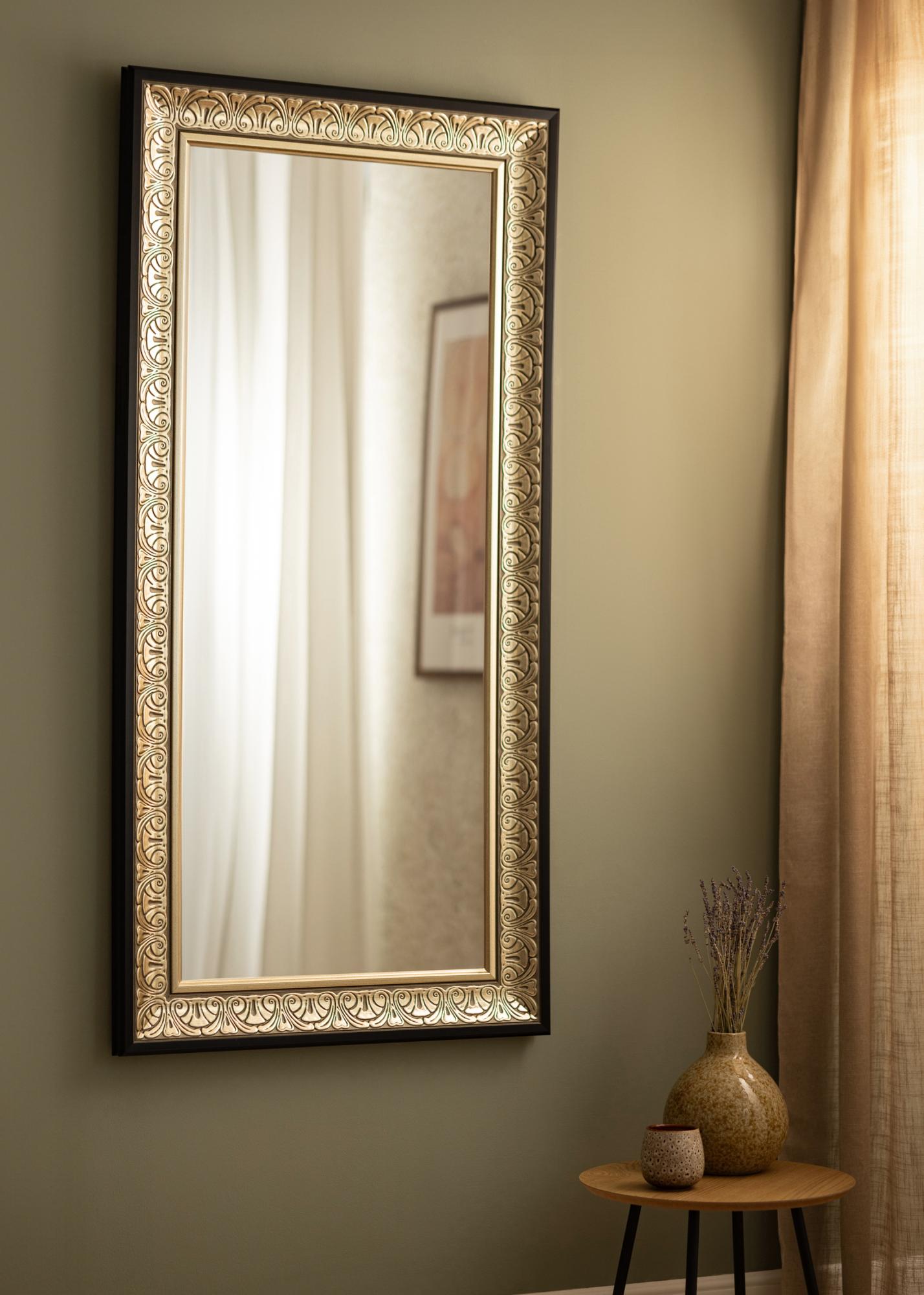 Stylové stříbrné ornamentální zrcadlo, které se hodí stejně dobře do šatny, jako do předsíně nebo do koupelny. Vzhled rámu kolem zrcadla, s nadčasovým vzorem, umožňuje, aby zrcadlo zapadlo do všech typů interiérových stylů, od romantických pastelově zbarvených ženských ložnic až po více stylové a jinak minimalistické prostředí, kde zrcadlo vytváří kontrast. Také se dobře hodí zavěsit nad komodu nebo bufet pro pocit většího prostoru v místnosti.
